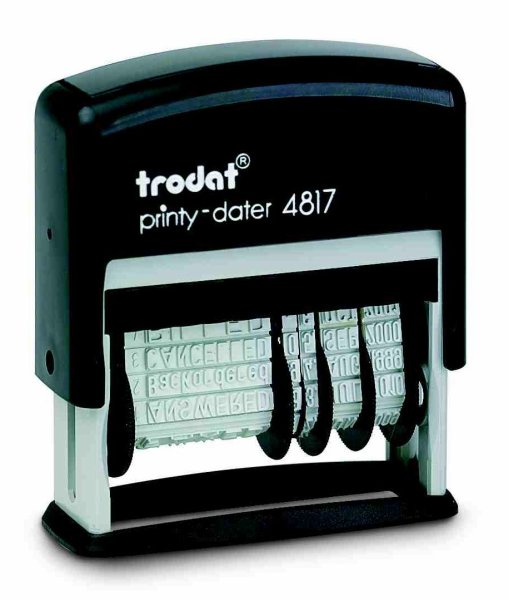 Trodat Printy Dater 4817 -leimasin eri teksteillä