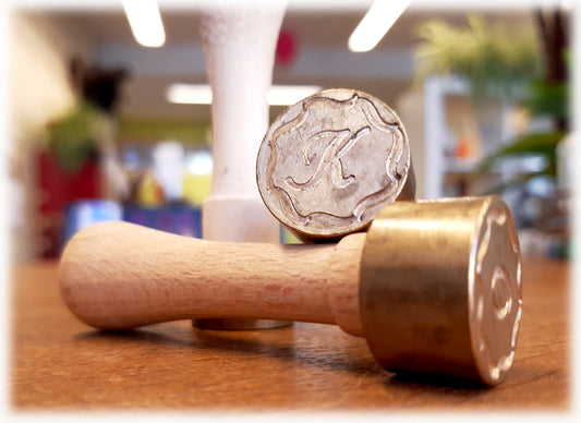 Monogrammisinetti omilla kirjaimilla tai nimellä. Koko Ø 26 mm, useita eri fontteja.