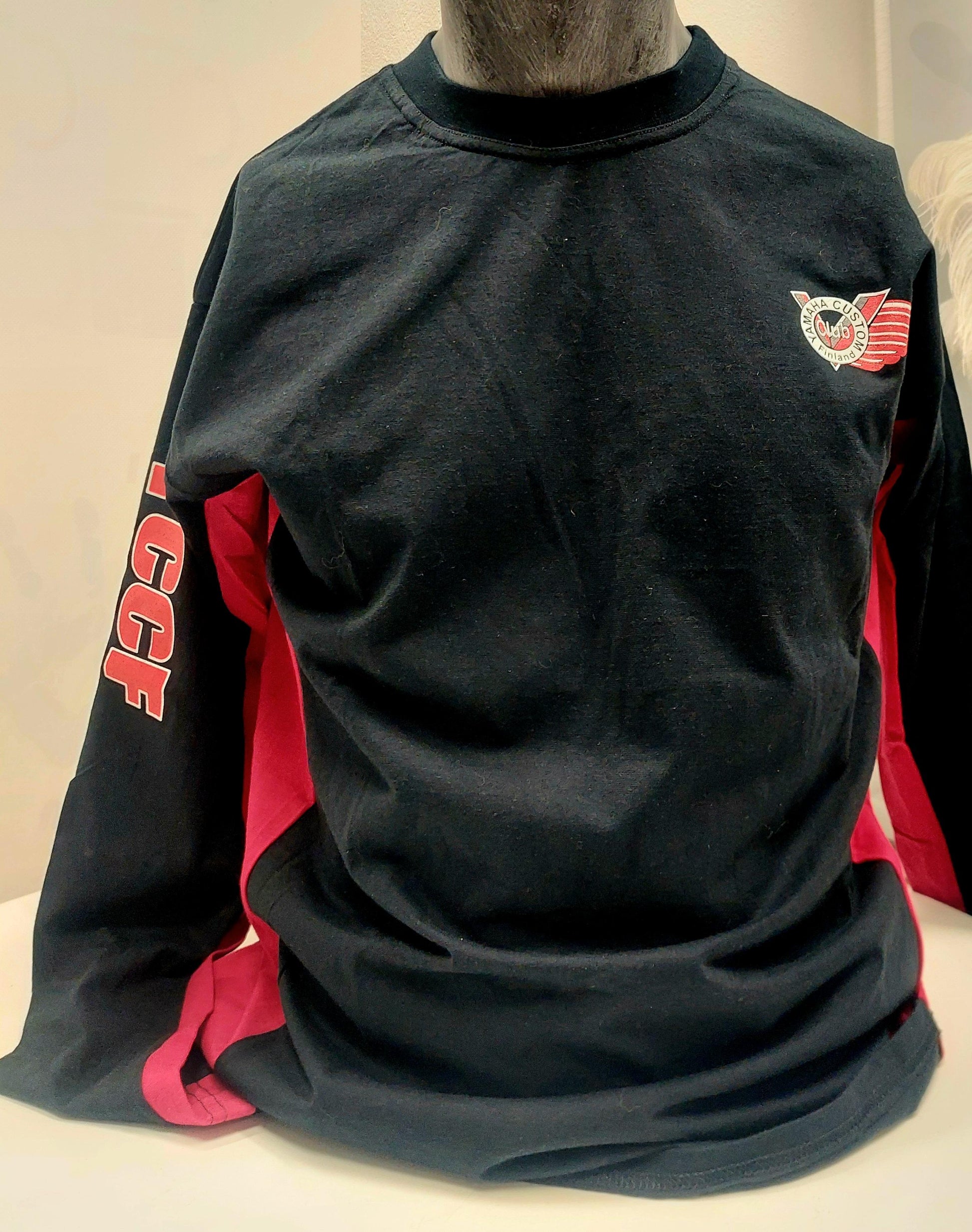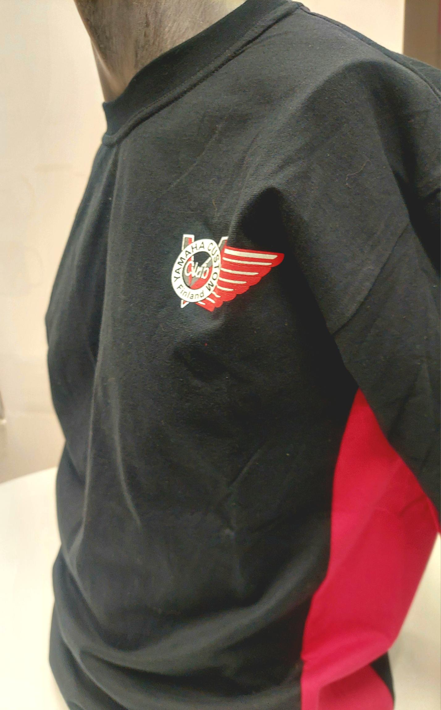 Väri: punamusta, koot S-4XL. Painatus rinnassa ja oikeassa hihassa.