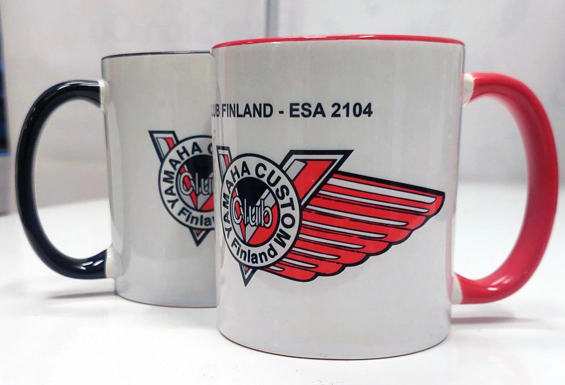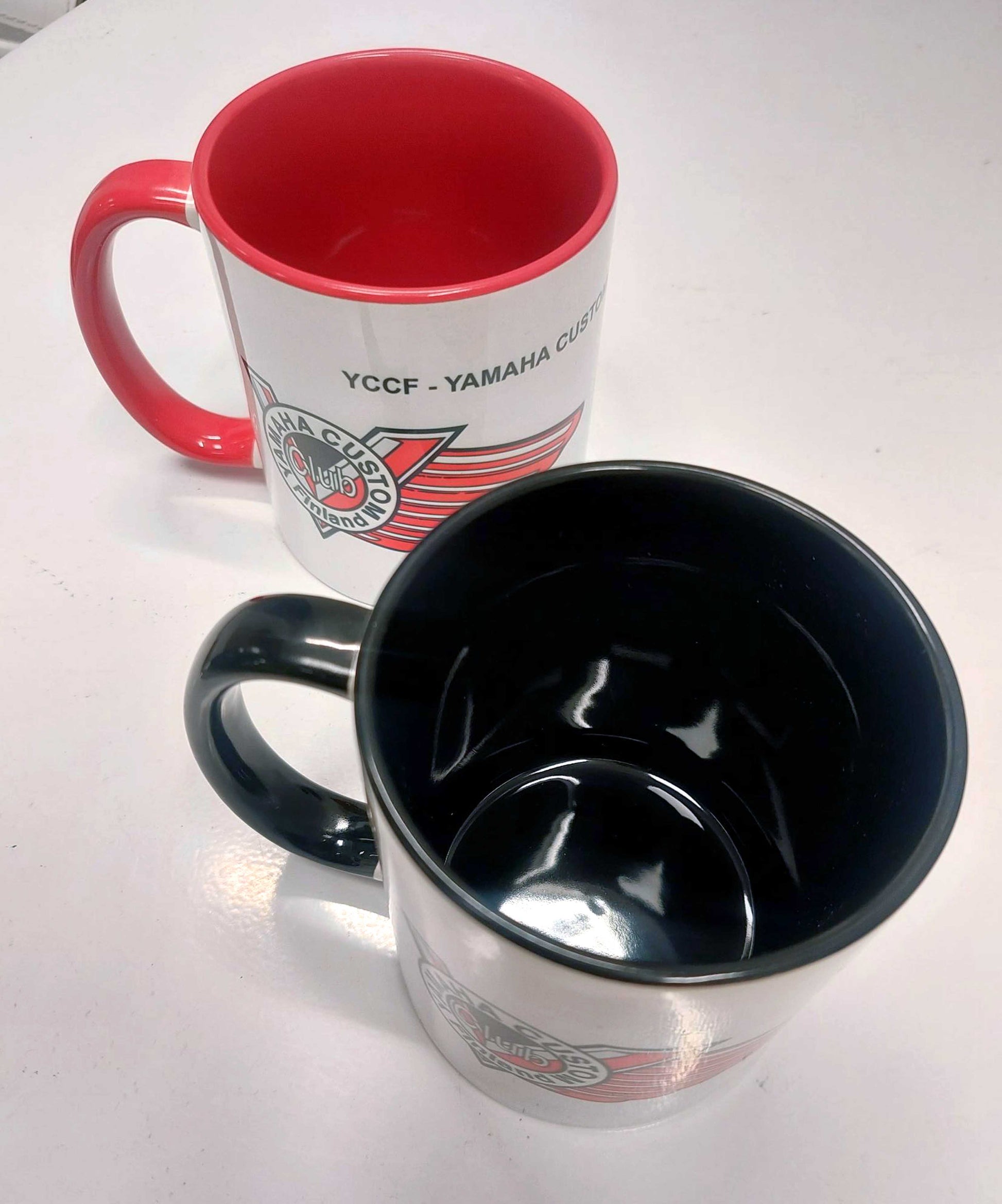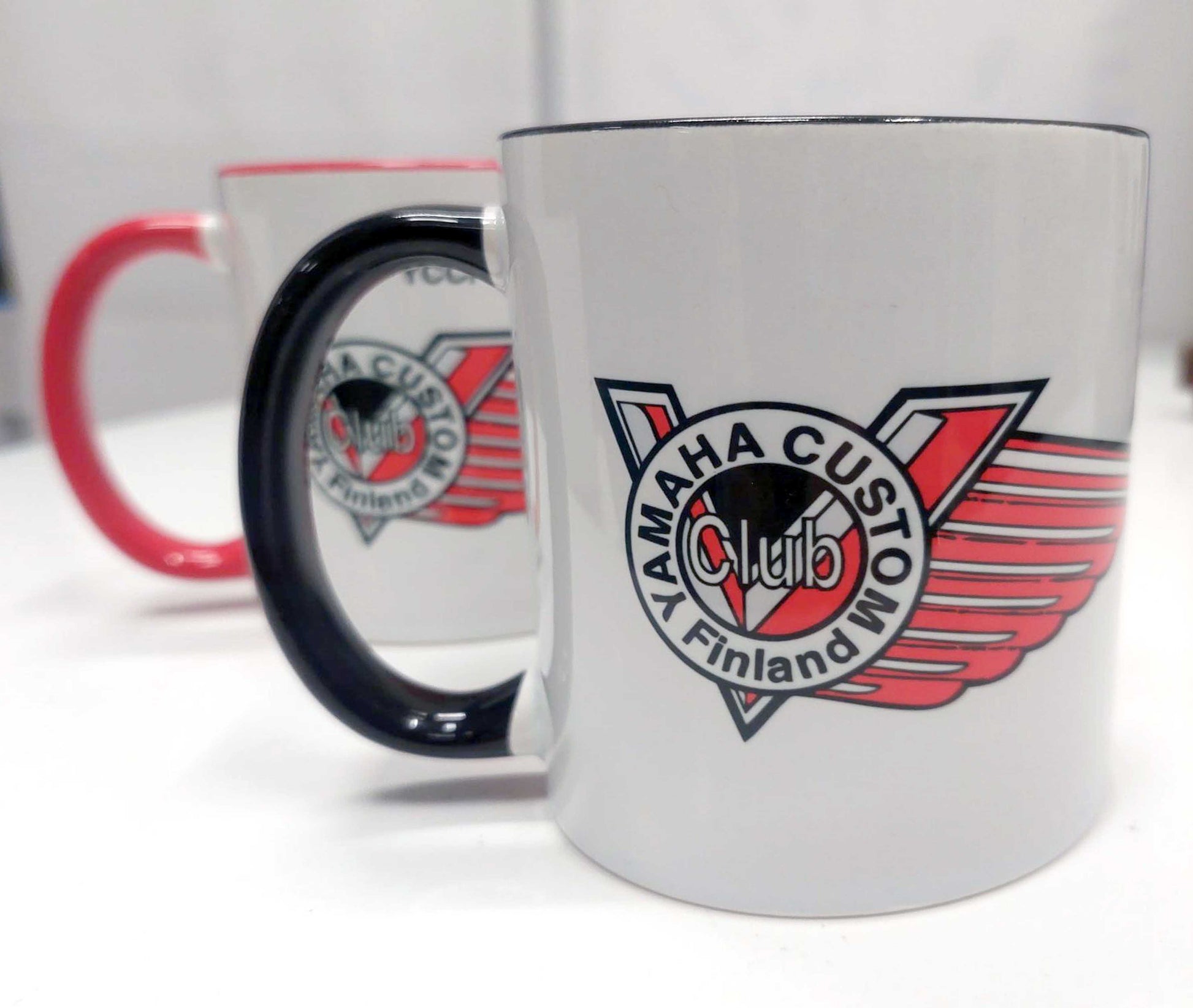 Mukissa on korva ja sisus joko musta tai punainen. Tämän mukin saat toivomallasi värillä, vain kerhon logolla tai logolla ja nimellä + jäsennumerolla yksilöitynä.