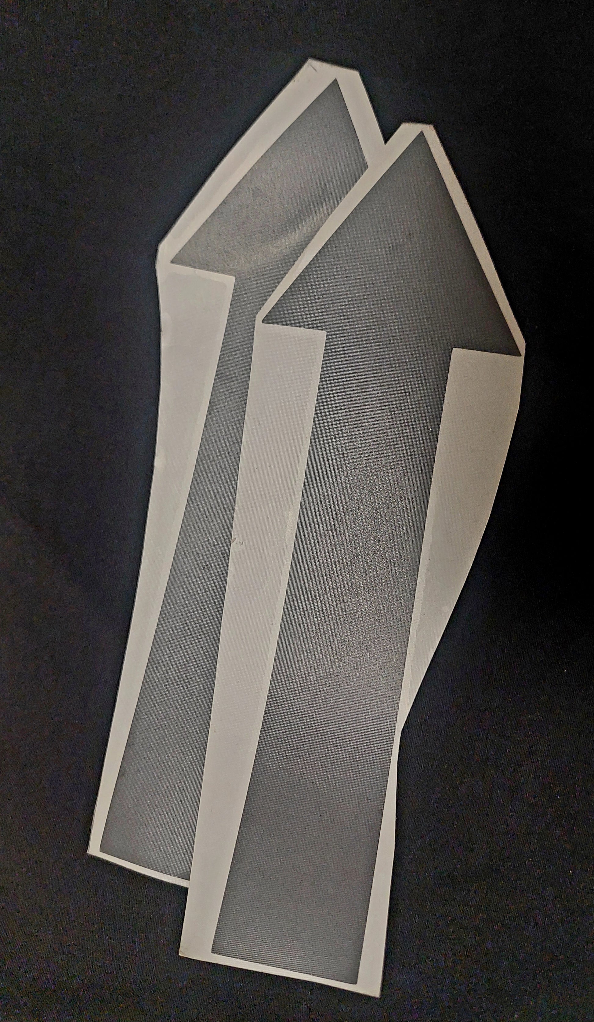 Ulkotarraa, Oracal leikattu musta 21,5 cm nuoli. Tarra on asemointikalvon alla, helppo asentaa.