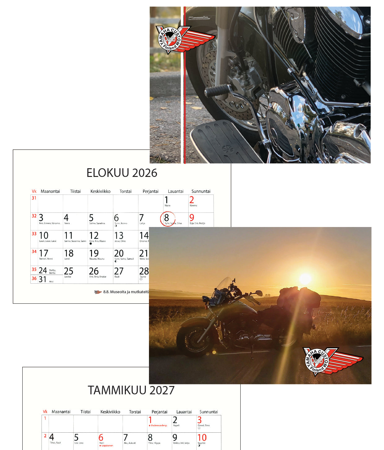 Kierresidottu YCCF seinäkalenteri, kuvat jäsenten ottamia, valokuvakisan helmiä.
