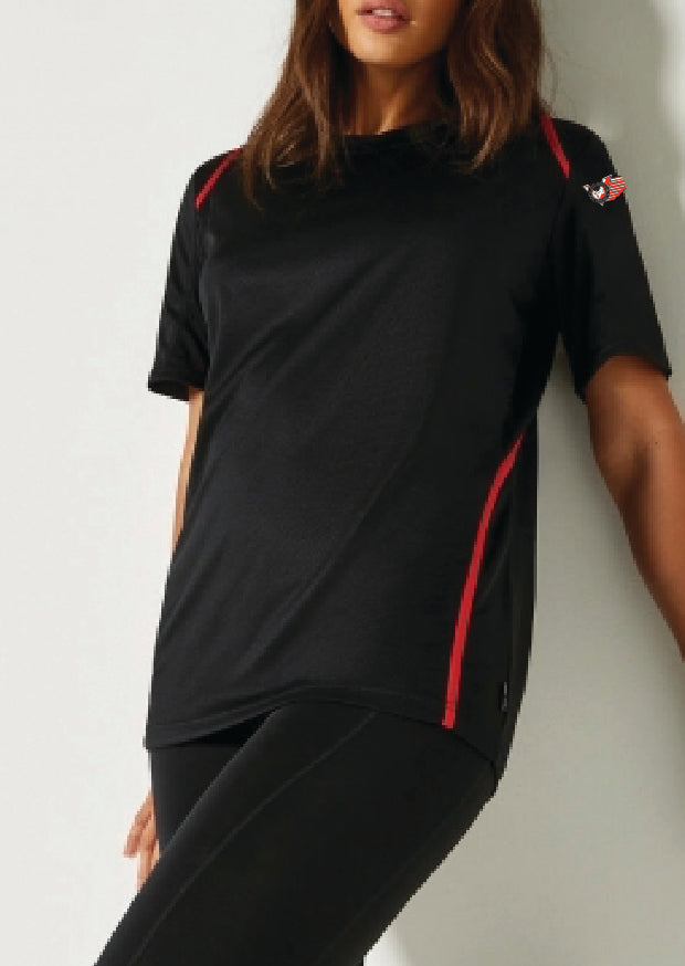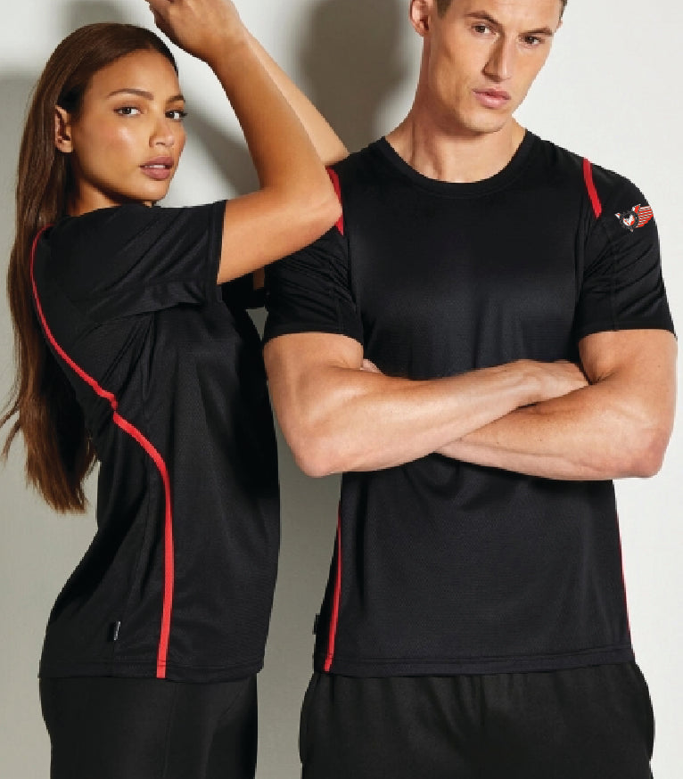 Näyttävä ja laadukas kaksivärinen tekninen t-paita. Väri mustapunainen, koot XS-2XL, molemmille sopiva suora malli, naisen kannattaan valita 1 kokoa pienempi jos toivoo paidan olevan tyköistuvampi.